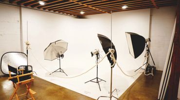 My studio is equipped with loads of different backdrops, lighting, hair & make up station, changing area, and a comfortable place for us to sit and discuss your needs. See Photos below. There are also plenty of great spots just outside the studio doors to grab some natural light looks at the same time. I also have portable studio equipment if you have a spot at your home that you would prefer that I come to you. I have worked in garages and even backyards. We just need a little bit of shade.